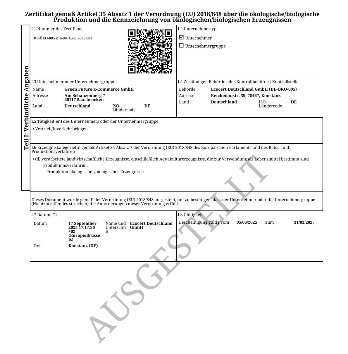 Unsere BIO-Zertifikatsnummer lautet: DE-ÖKO-005.276-0074603.2025.003