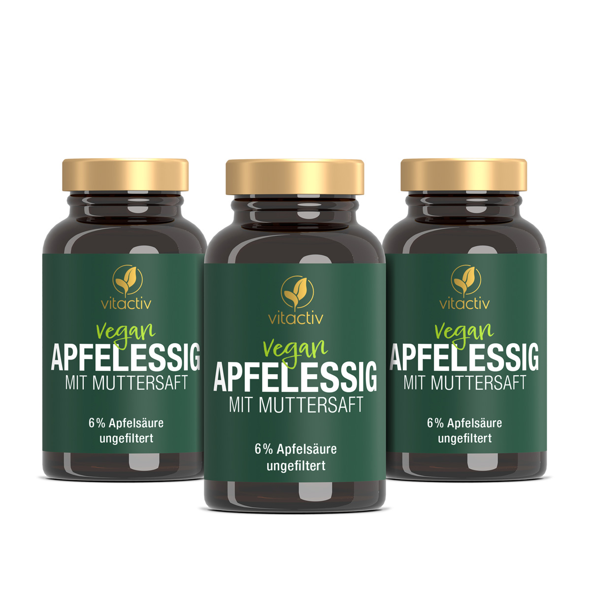 Heute ist insbesondere der Apfelessig (oder stylischer auf Englisch: Apple Cider Vinegar) in der gesundheitlichen Anwendung beliebt – z. B. für die Gewichtsreduktion, die Verdauungsoptimierung und zur Beseitigung von Hautunreinheiten. Vom Geschmack her ist dieser Obstessig ein wenig milder als Weinessig. Wenn dir das immer noch zu sauer ist, sind die APFELESSIG Kapseln von Vitactiv eine prima Möglichkeit, die Vorteile von Essig geschmacksneutral zu genießen.