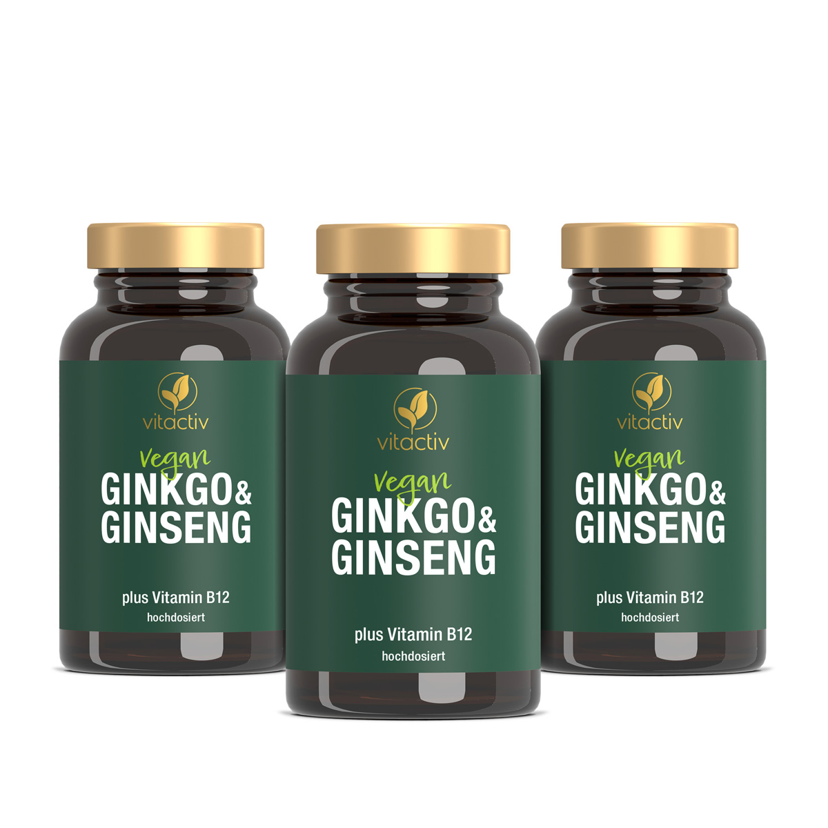 Der innovative Premium-Komplex GINKGO & GINSENG + B12 beinhaltet hochwertiges Ginkgo-Extrakt und Ginseng-Extrakt (keine einfachen Pulver!) plus Vitamin B12 – wissenschaftliche Studien zeigen positive Ergebnisse. Einzigartige Formel, die nur bei uns erhältlich ist.